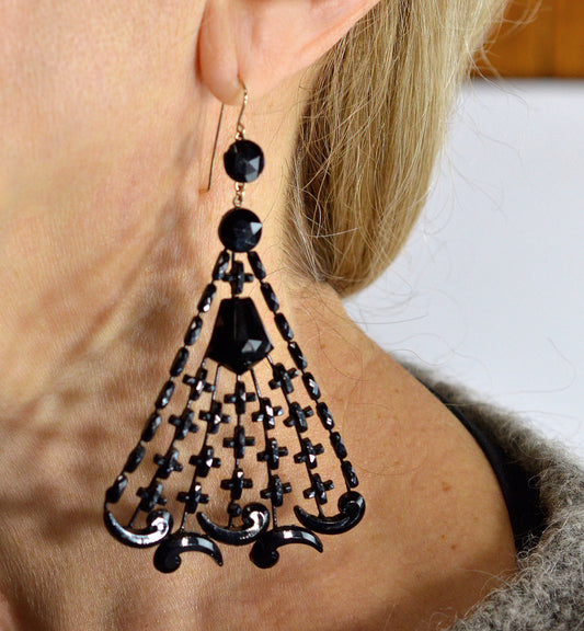 Reserved for N. Antique Georgian Vauxhall Glass Large Dangle Earrings C.1830