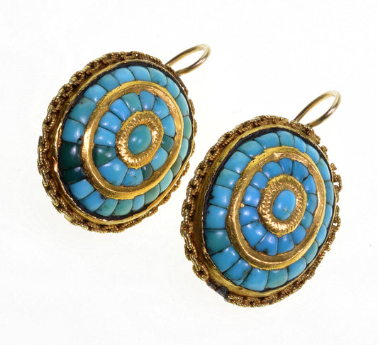 Antique Victorian Turquoise 14K Gold Earrings C.1860 003525