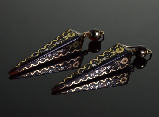Antique Victorian Pique Inlaid Gold & Silver Drop Earrings C.1860 003604