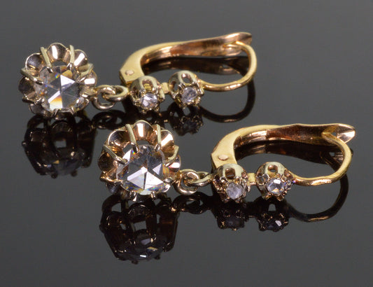 Reserved for L.W. Antique French 18K Gold 0.5 CTW Diamond Earrings C.1890