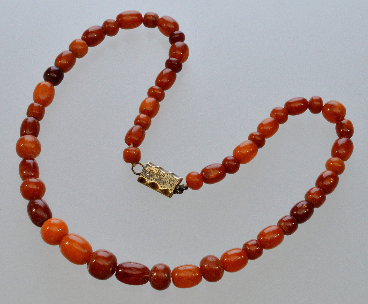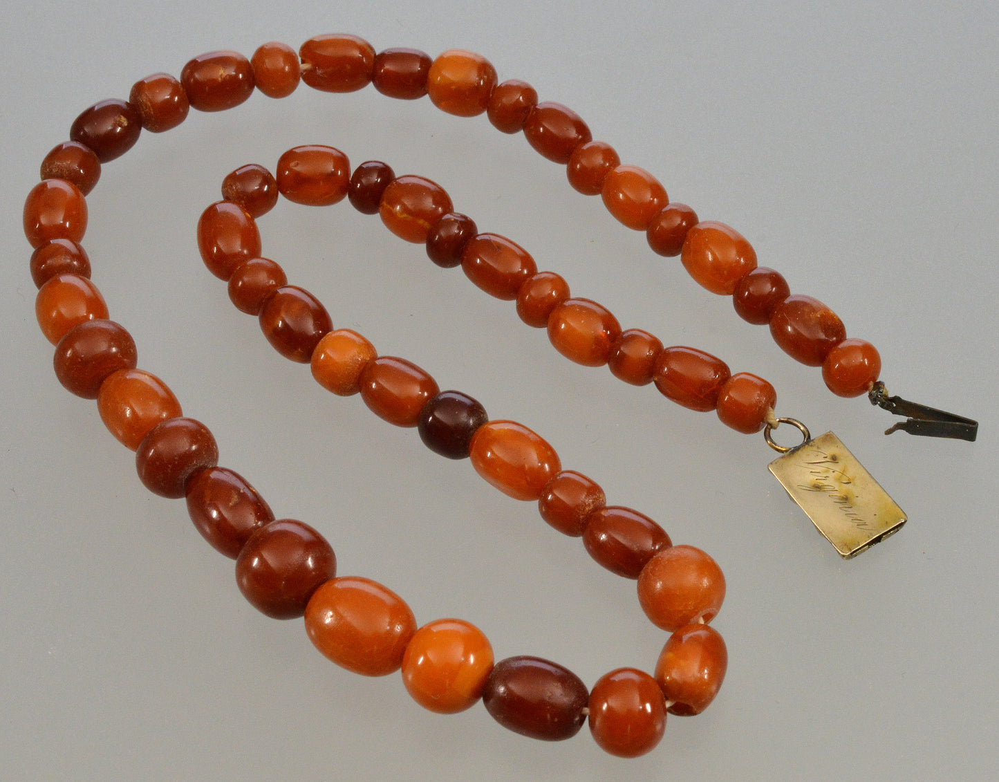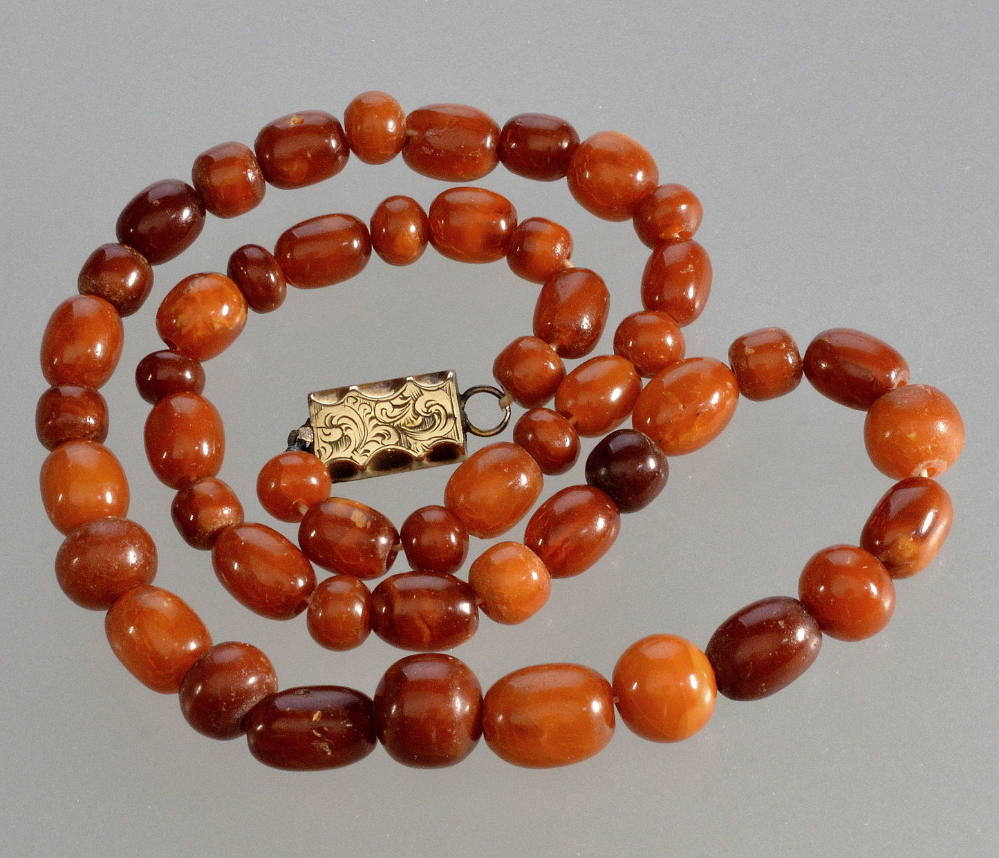 Antique Victorian Butterscotch Amber Bead 9K Gold Necklace C.1890