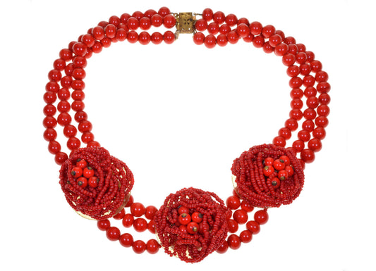 Antique Victorian Italian Orange Red Coral Necklace C.1880 003605