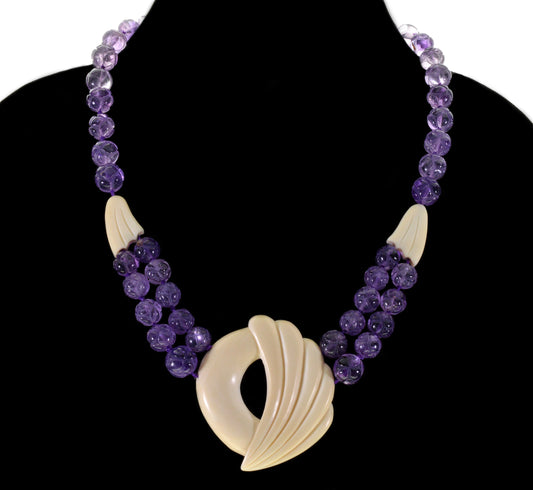 Antique Art Deco Carved Amethyst Bead Necklace C.1920 003568