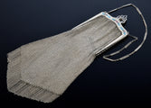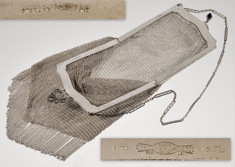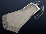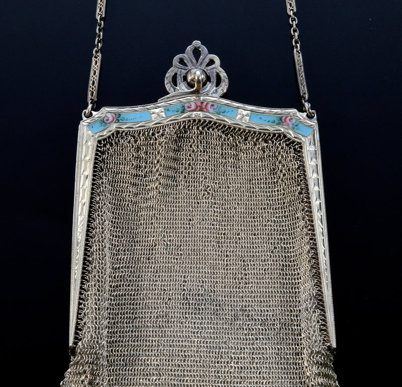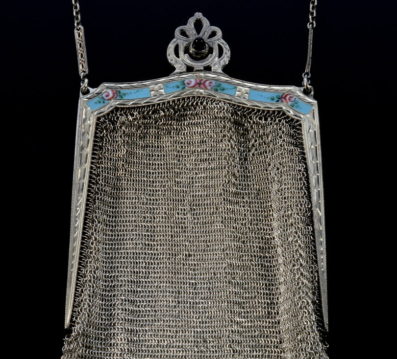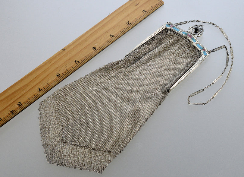 Antique Art Deco Whiting & Davis Sterling Mesh Purse Handbag Enamel Sapphire C.1920