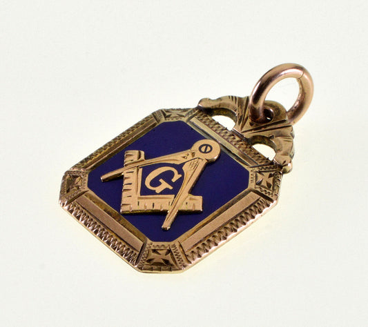 Antique Victorian 10K Enamel Masonic Fob Pendant C.1890