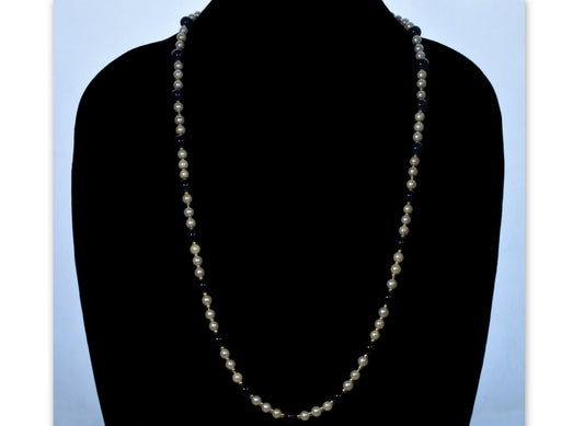 Dressy 14K Gold Pearl Onyx Necklace C.1950