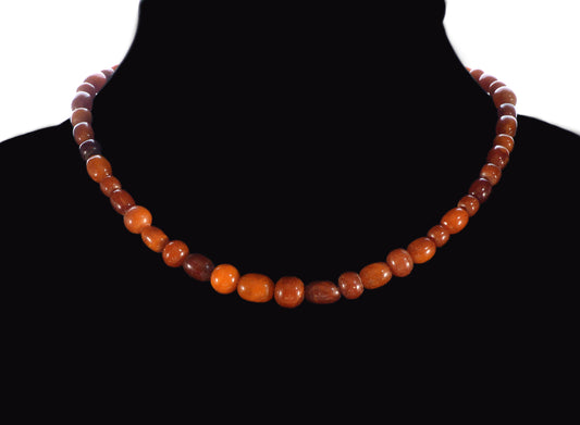 Antique Victorian Butterscotch Amber Bead 9K Gold Necklace C.1890
