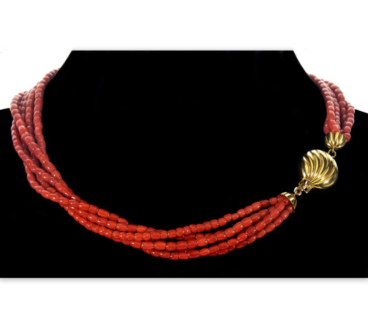 Italian 18K Gold Red Coral Necklace 17" Long 45.5 G C.1950