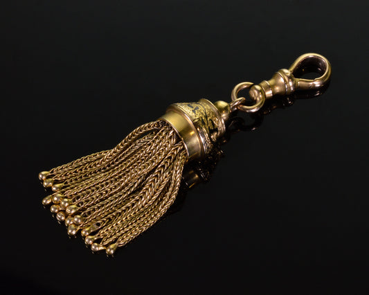 Antique Victorian 14K Gold Tassel Pendant Dog Clip Clasp C.1890