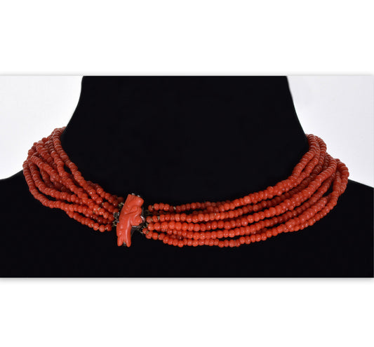 Antique Salmon Coral Carved Dragon Necklace Clasp 51.4 g C.1890