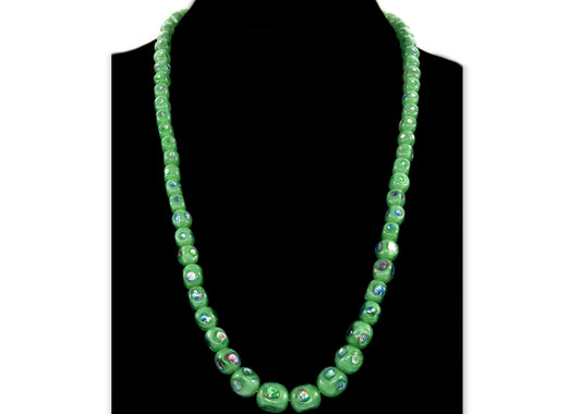 Reserved for B. Antique Art Deco Rainbow Foil Eye Glass Bead Necklace 27 1/2" C.1920
