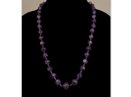 Reserved for M.A. Art Deco 14K Gold Carved Amethyst Bead Necklace C.1930