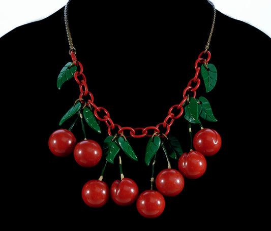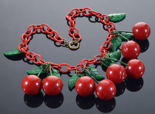 Reserved for B.F. Iconic Red Cherry Bakelite Necklace C.1930