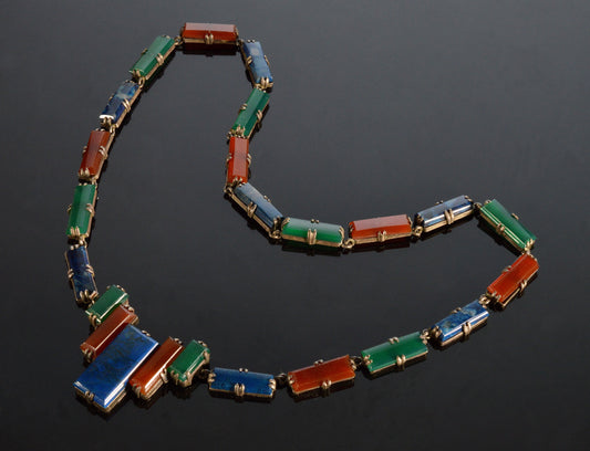 Antique Art Deco Germany Chrysoprase Carnelian Sodalite Sterling Necklace C.1920