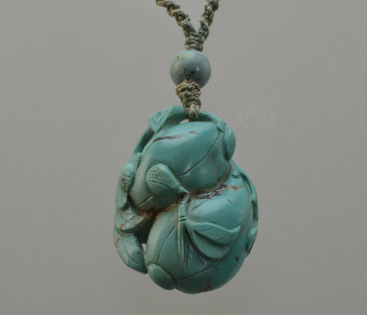 Antique Chinese Carved Turquoise Pendant Necklace C.1890