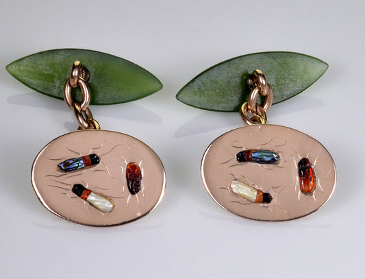 Reserved for M. Victorian Shibayama Insect Bug 9K Gold Cufflinks C.1890