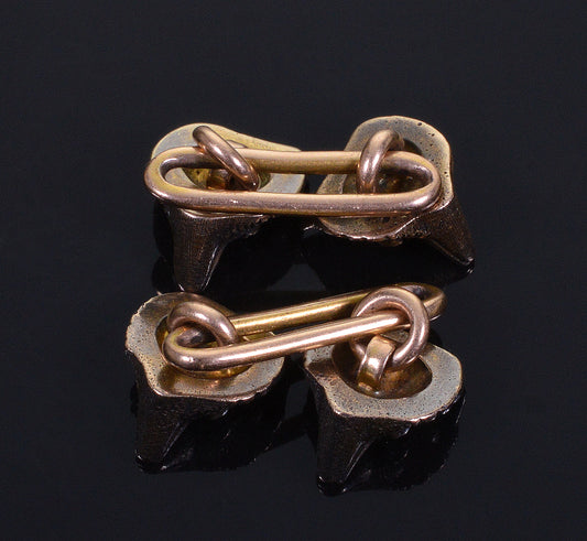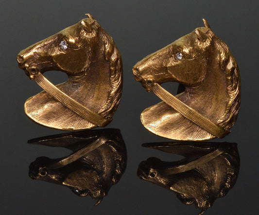 Antique Edwardian 14K Gold Horse Head Cufflinks Diamond Eyes C.1900