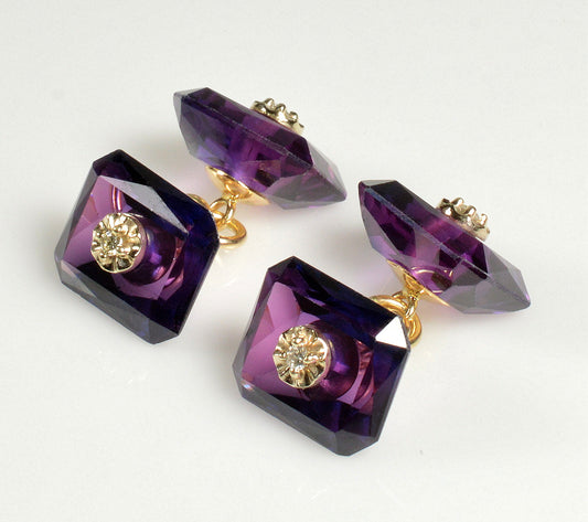 Antique Victorian 14K Gold Amethyst Diamond Cufflinks C.1890