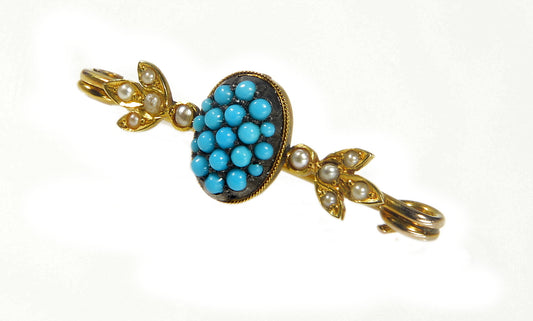 Antique Victorian 14K Gold Natural Turquoise Pearl Pin Pendant C.1880