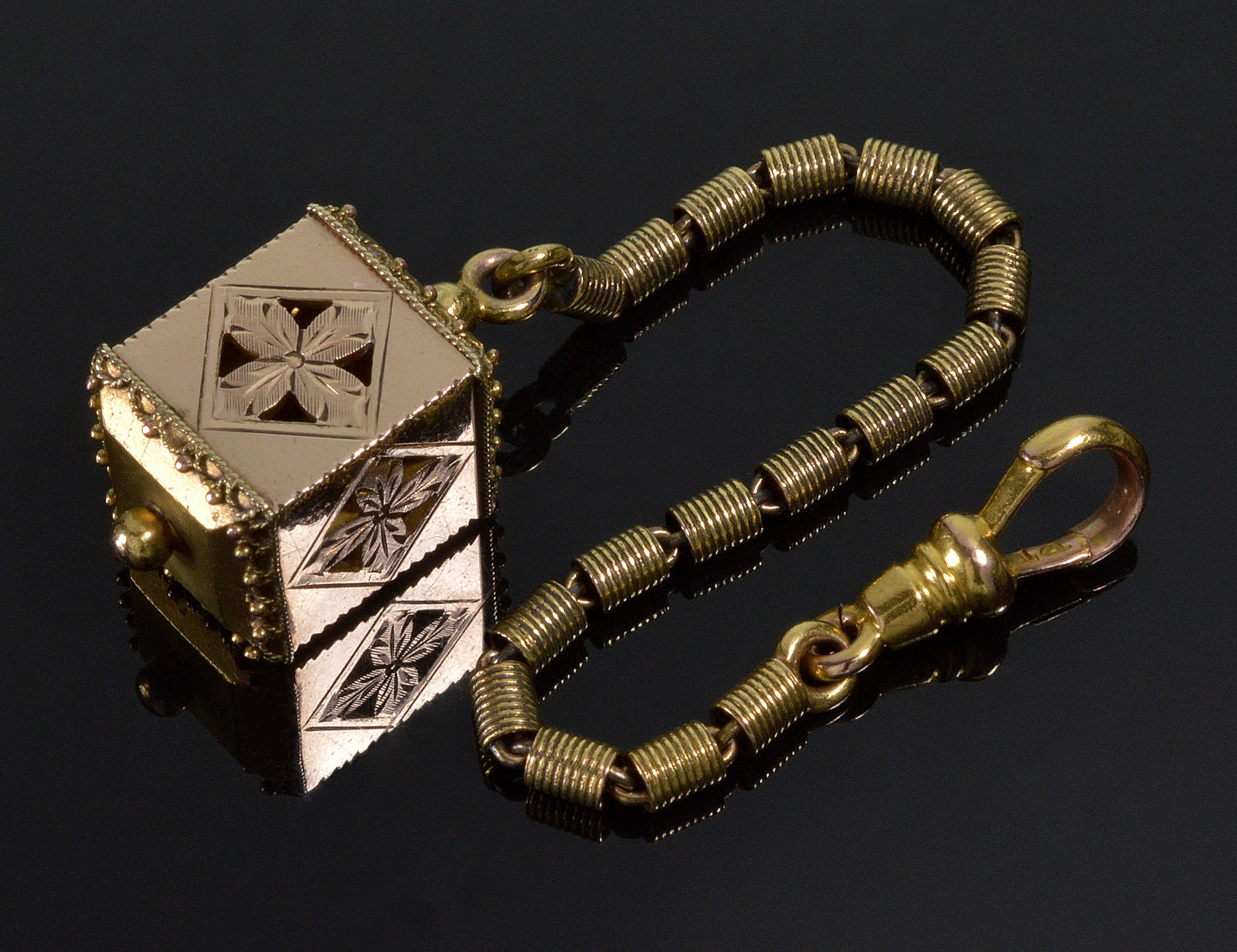 cube fob adorned with Etruscan style granulation.