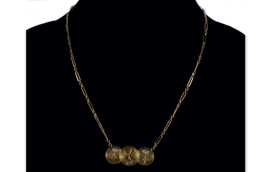 Antique Art Nouveau 14K Gold Pendant Necklace 10K Paperclip Chain 1900