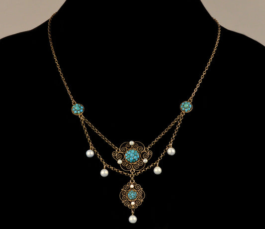Antique Edwardian Marius Hammer Necklace Turquoise Enamel Vermeil Sterling C.1900
