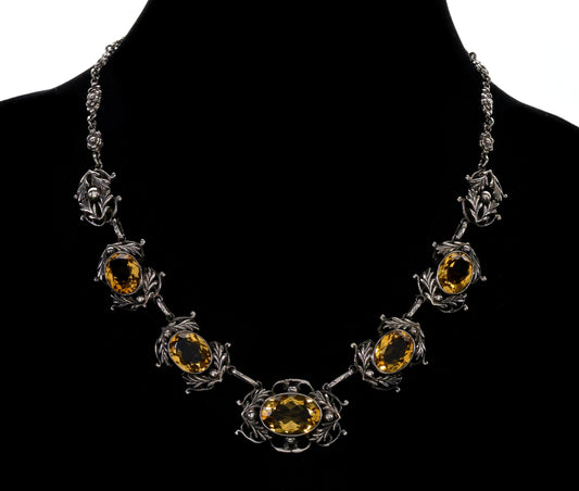 Antique Art Nouveau Sterling Citrine Link Necklace C.1900