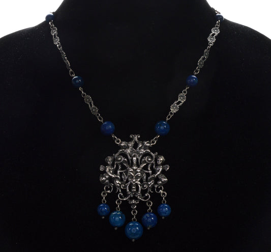 Antique Art Nouveau Peruzzi Satyr Angels Necklace Renaissance Revival Silver Sodalite C.1900