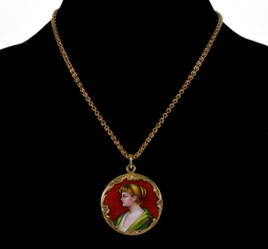 Antique Swiss Enamel Large Portrait Pendant Sterling C.1900