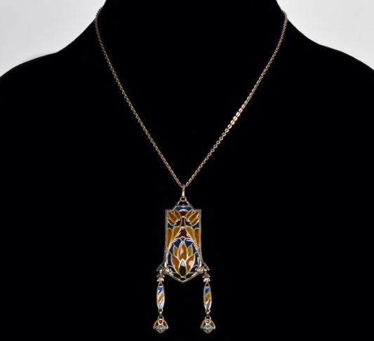Art Nouveau Jugendstil Plique-A-Jour Egyptian Revival Sterling Pendant C.1900