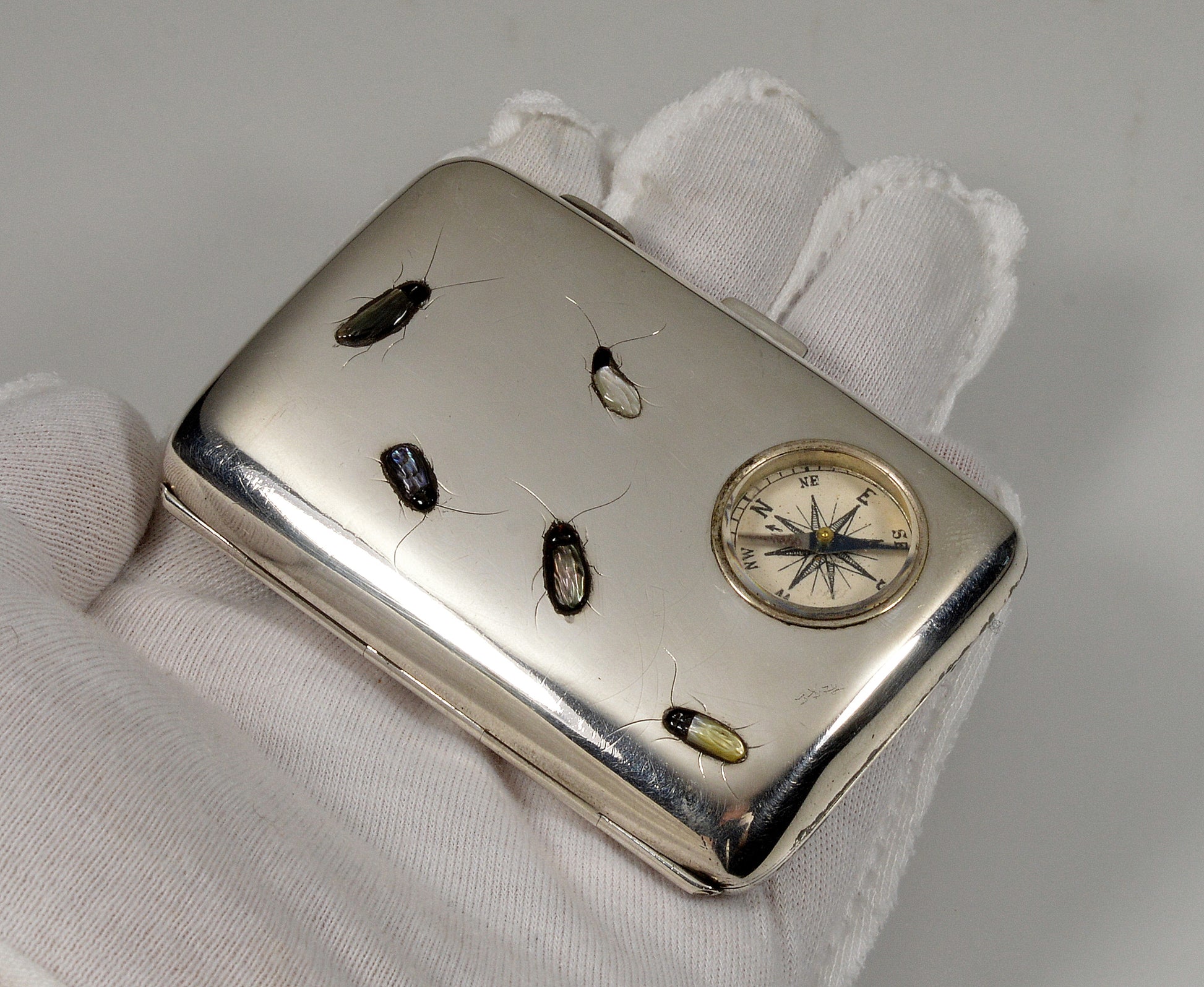 Antique Japan Shibayama Insect Inlay Cigarette Case With Compass Sterling C.1915