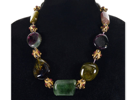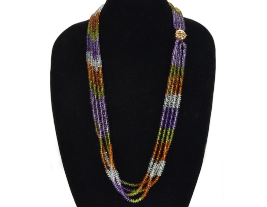 14K Gold Amethyst Peridot Citrine Quartz Necklace by Designer 32" Long