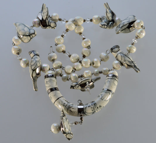 Mary Lou Higgins Love Birds Ceramic Necklace Signed C.1983