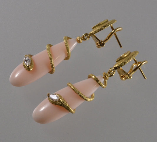 Italian 18K Gold 1.0 CTW Diamonds Coral Snake Earring C.1980