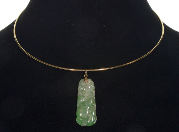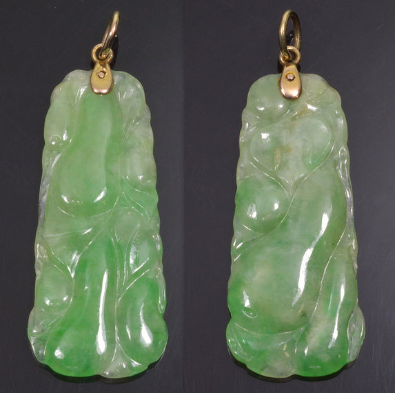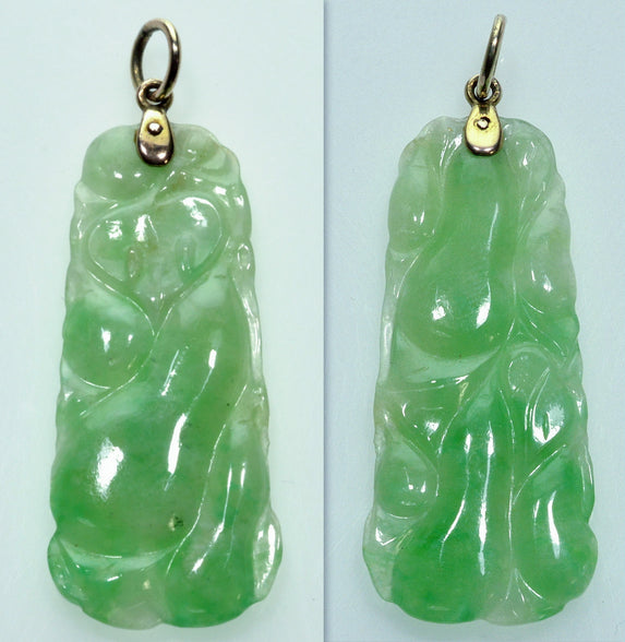 Antique Art Deco 9K Gold Jadeite Jade Pendant C.1920