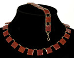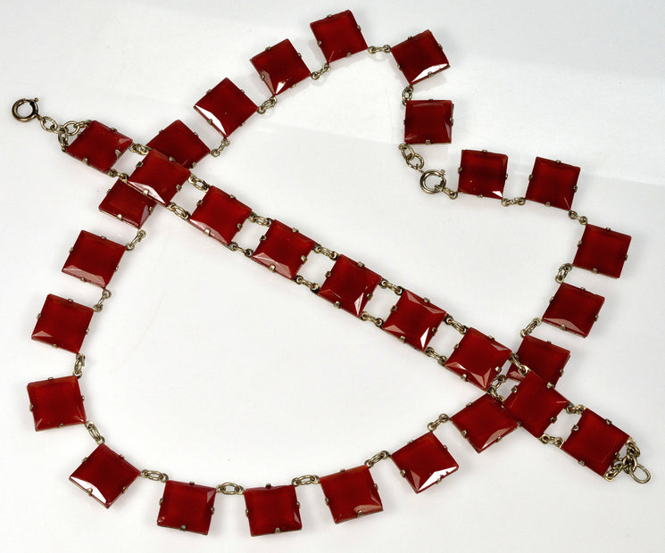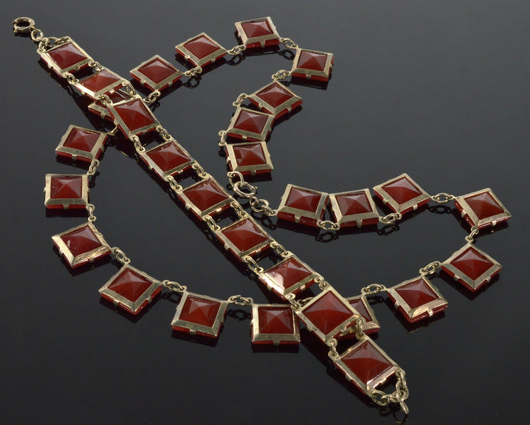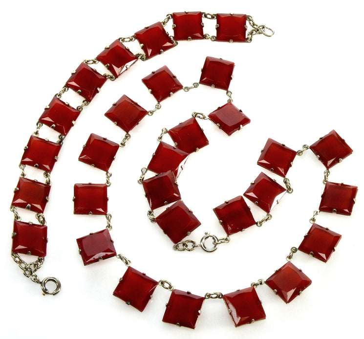 Antique Art Deco Czech Carnelian Glass Riviere Necklace Bracelet C.1920