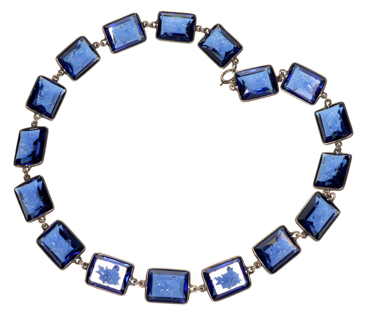 Antique Art Deco Intaglio Cameo Glass Sterling Necklace C.1920