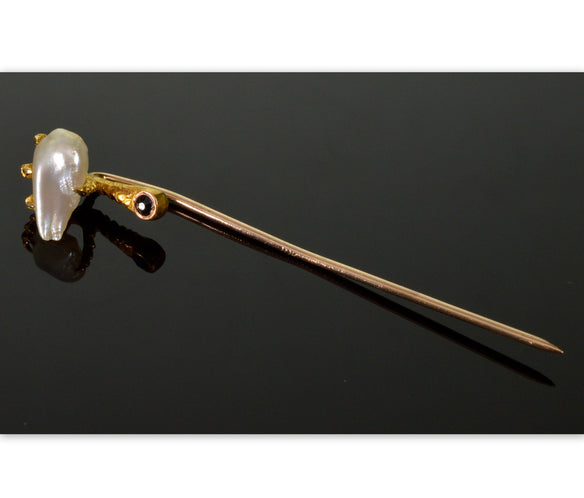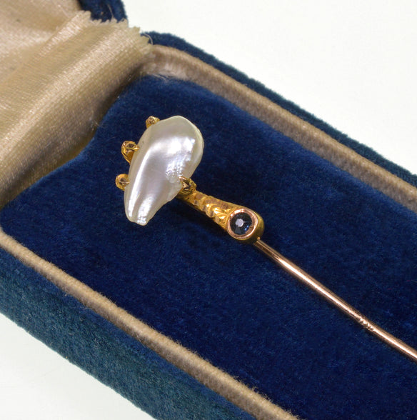 Antique Art Nouveau 10K Gold Eagle Talon Claw Stick Pin Baroque Pearl Sapphire C.1900