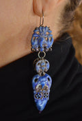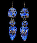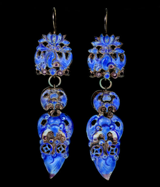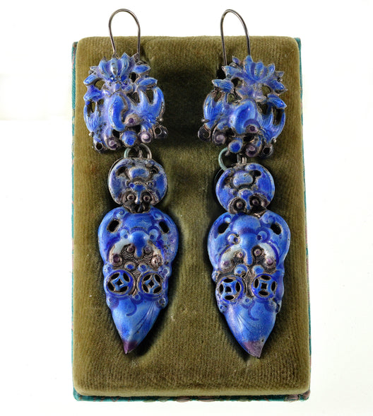 Antique Chinese Qing Dynasty Enamel Wedding Earrings 3 1/4" C.1890