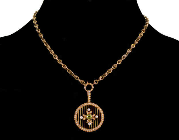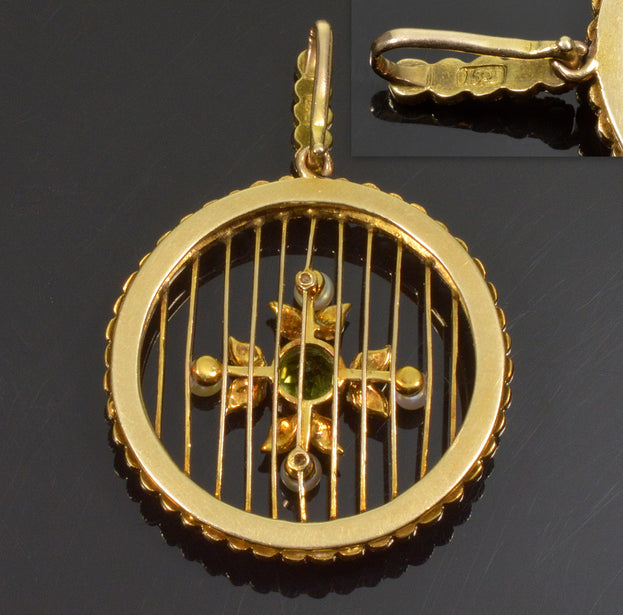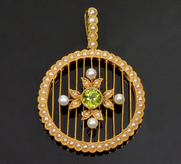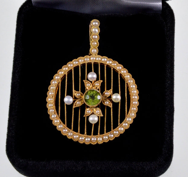 Antique Edwardian 15K Gold Pearl Peridot Pendant C.1900