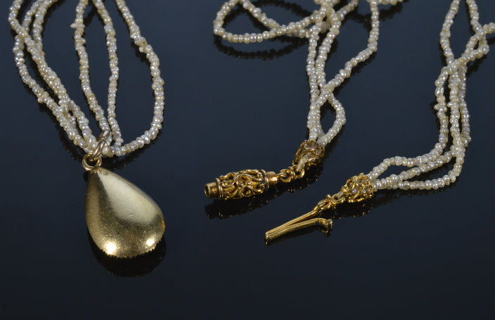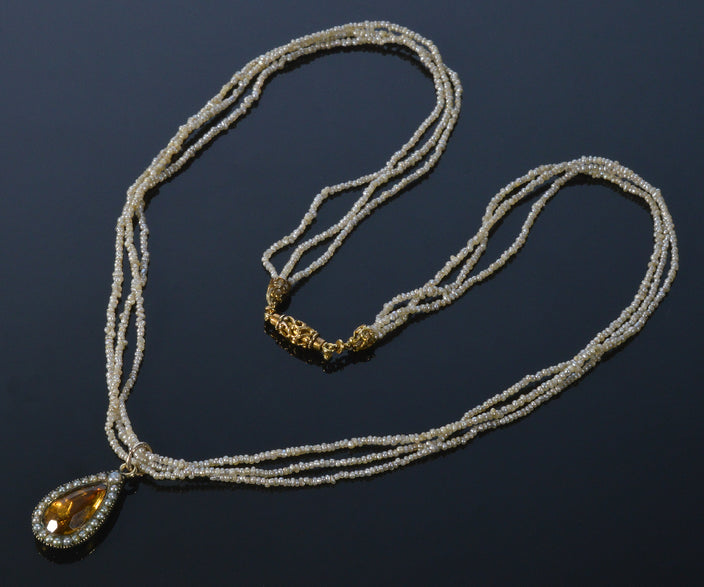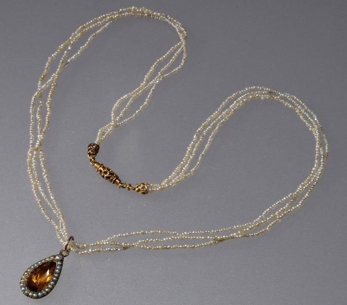 Antique Georgian 14K 10K Gold Seed Pearl Pendant Necklace C.1820