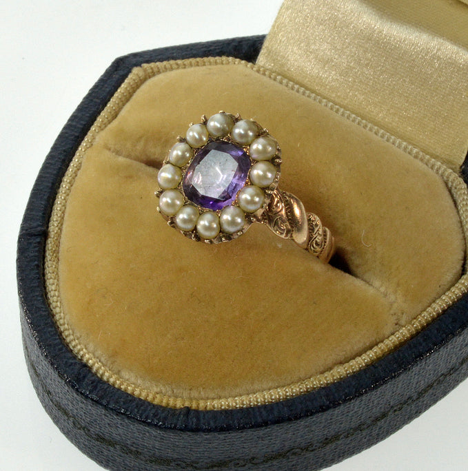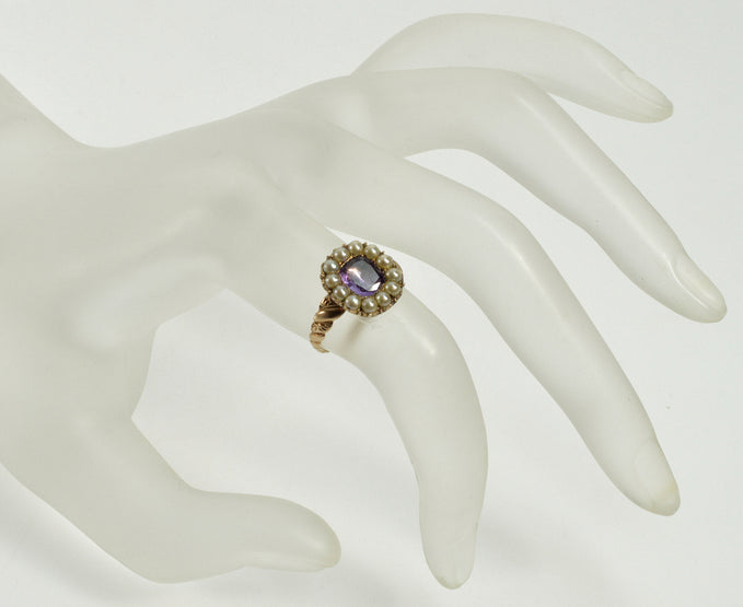 Antique Georgian 9K Gold Pearl Amethyst Conversion Ring C.1820 Size 5 1/2