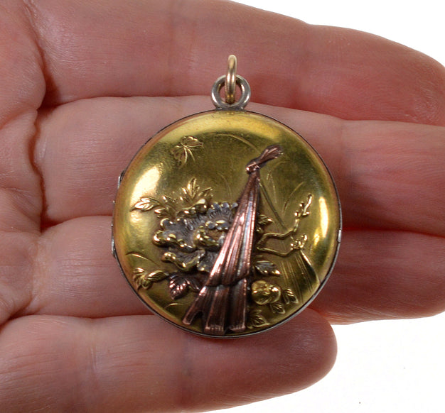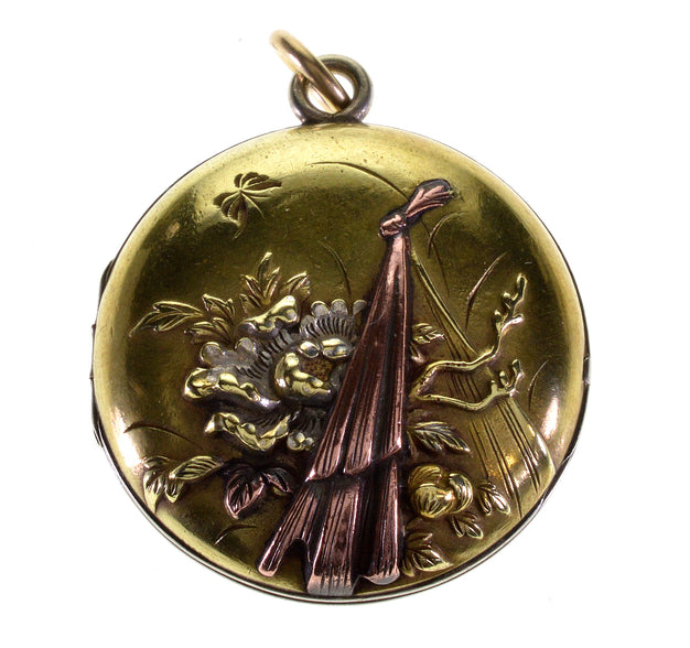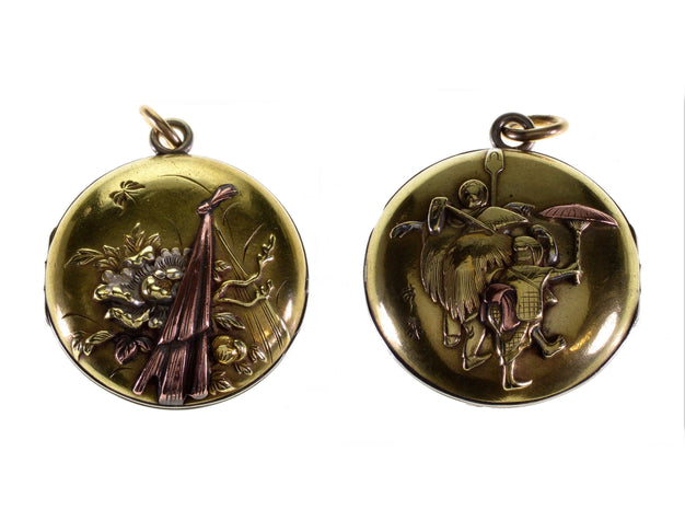 Rare Japanese mixed metal Shakudo locket pendant C.1880.