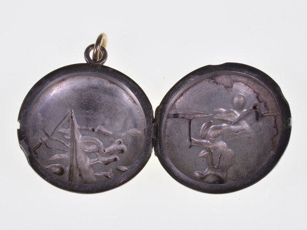 Antique Shakudo Mixed Metal Locket Pendant Japanese Meiji Period C.1880