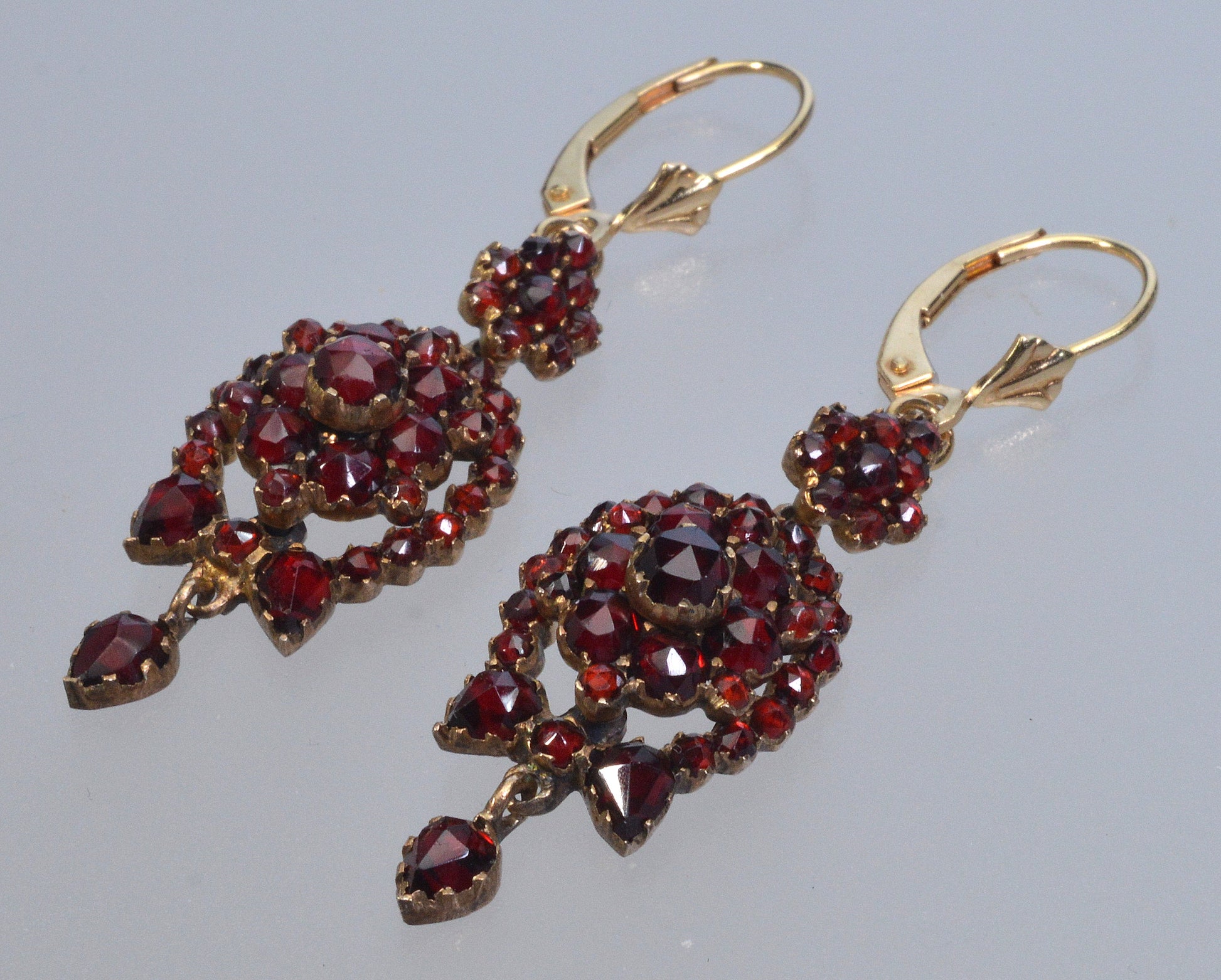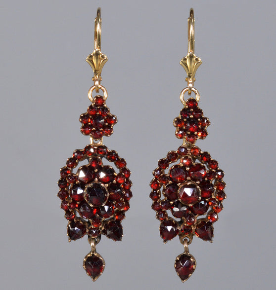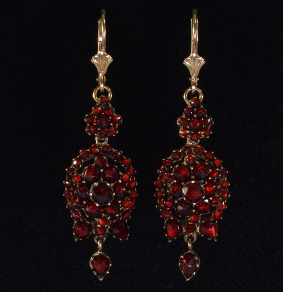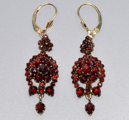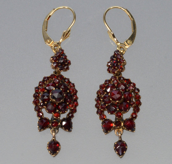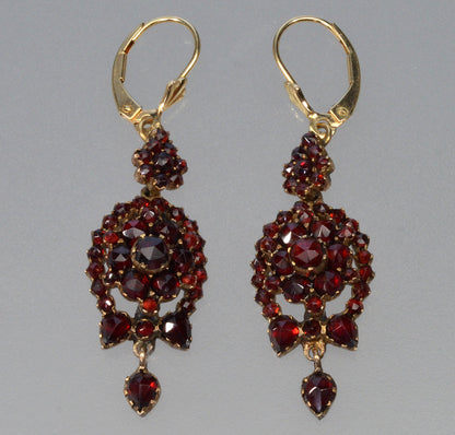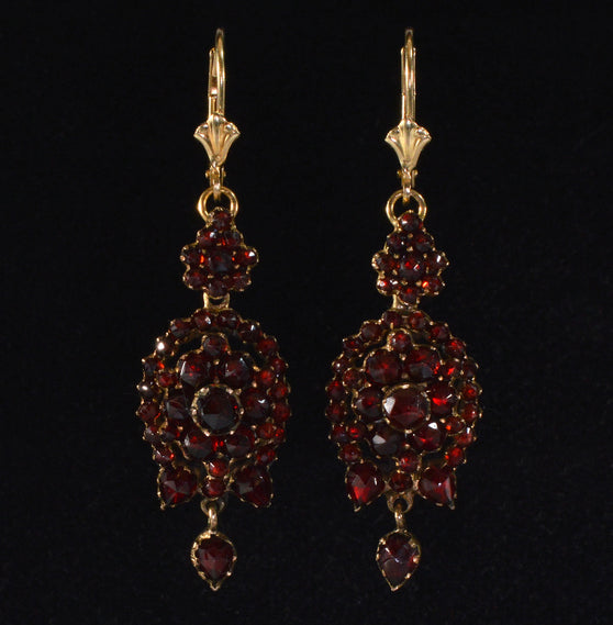 Antique Victorian Bohemian Garnet Gold Drop Earrings C.1890