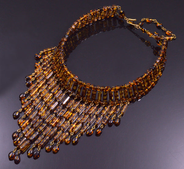 William De Lillo Tortoise Shell Glass Waterfall Necklace C.1970