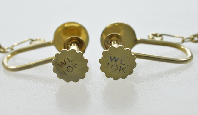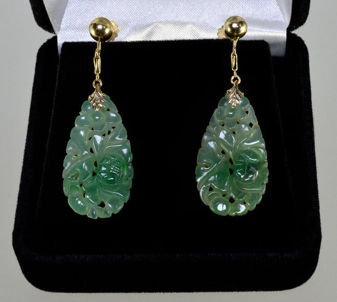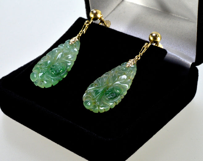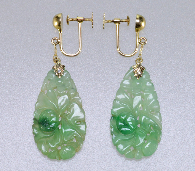 Art Deco Walter Lampl 10K Jadeite Jade Dangle Earrings C.1920
