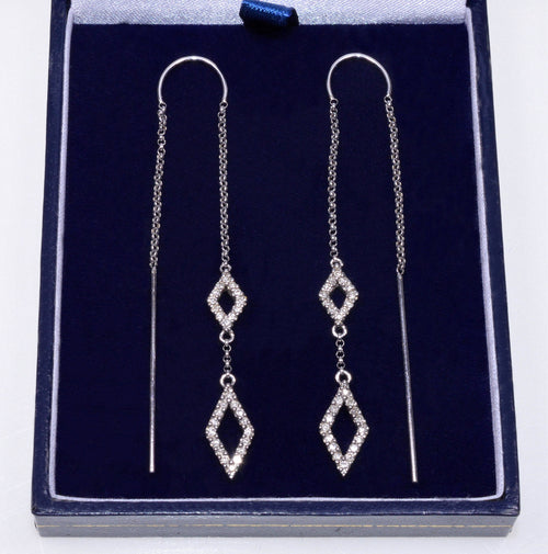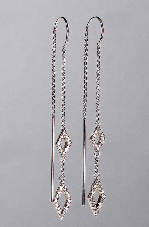Designer 14K White Gold Diamond Threader Bar Earrings from Neiman Marcus
