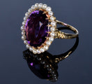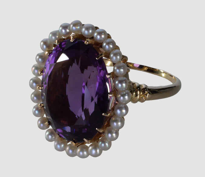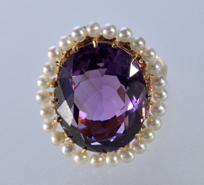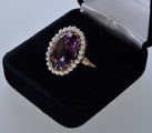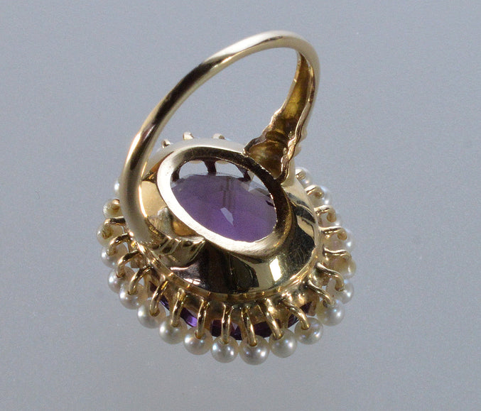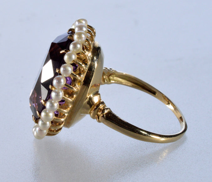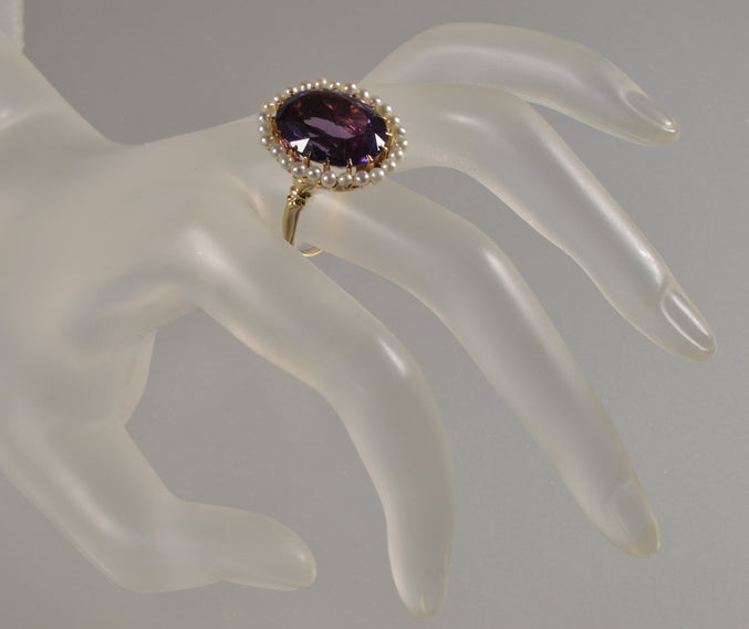 Edwardian Krementz 14K Gold Amethyst Natural Pearls Ring Size 6 3/4 C.1900