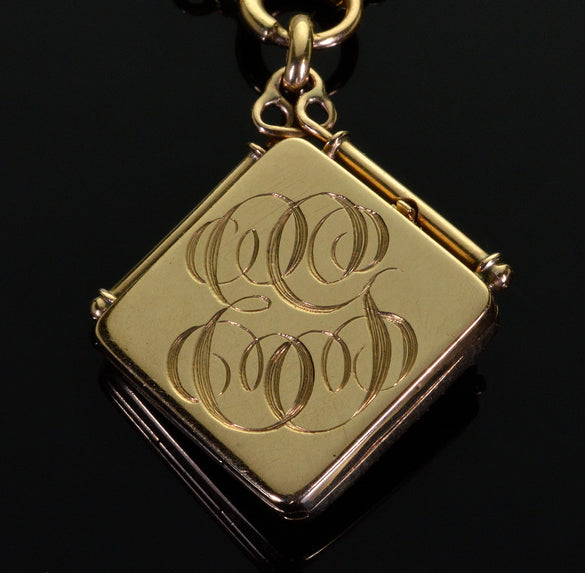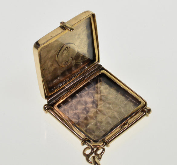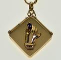 Well crafted 10K gold hand sapphire 2-picture locket pendant C. 1890.